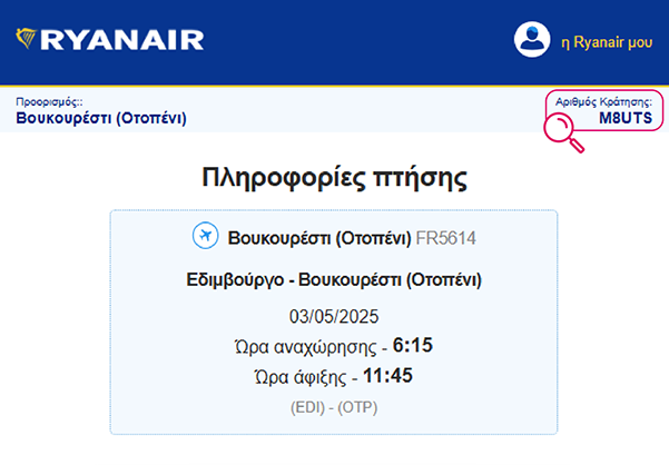 Ο αριθμός PNR αναφέρεται επίσης στο email από την Ryanair.